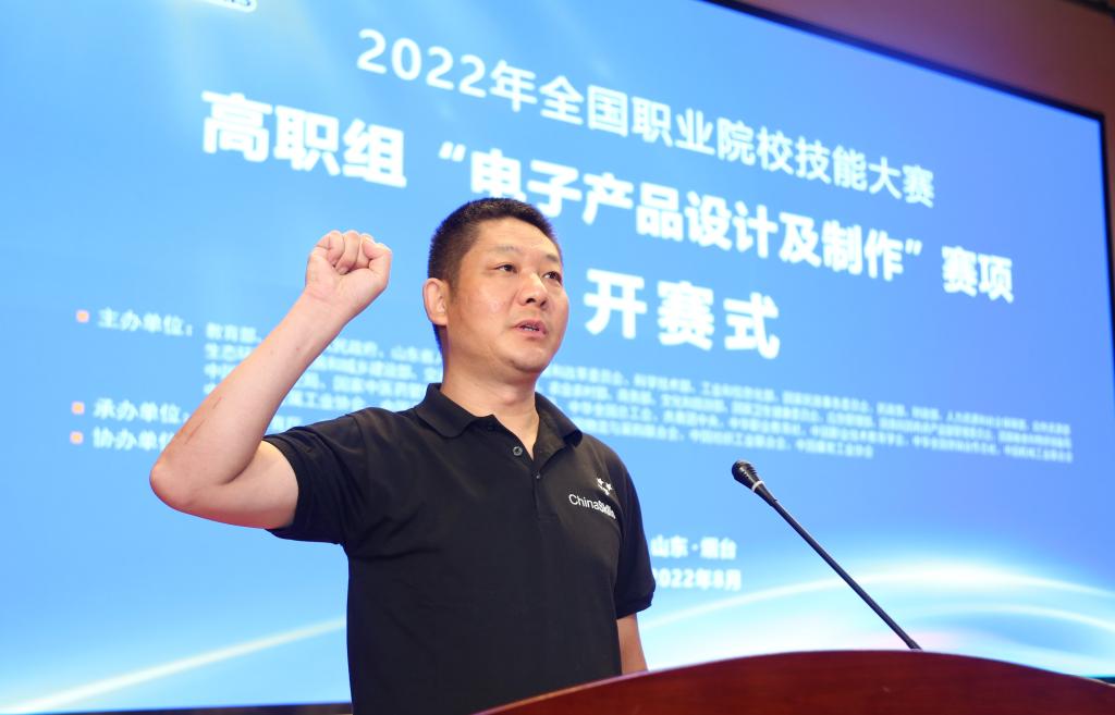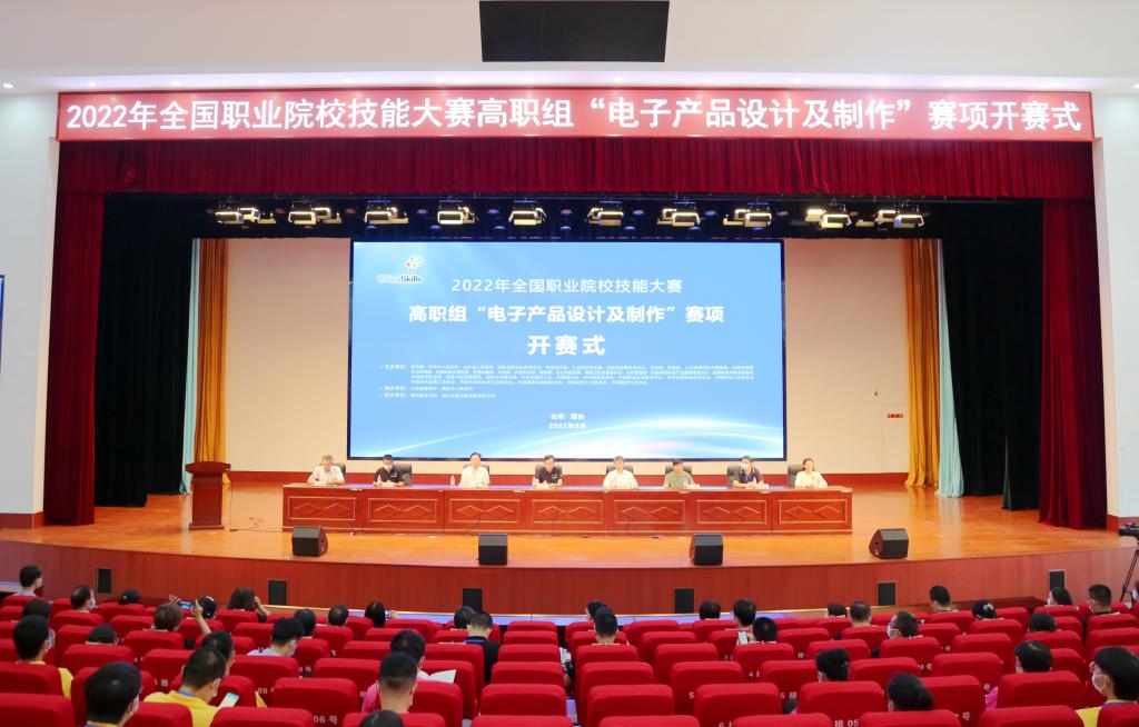 8月20日,2022年全国职业院校技能大赛高职组“电子产品设计及制作”赛项开赛式在金年会南区报告厅举行。赛项执委会副主任程远东,烟台市委教育工委常务副书记,市教育局党组书记、局长蔡润圃,金年会校长温金祥,大赛专家组组长袁浩、裁判组组长张华林、监督仲裁组组长陈正振,烟台市教育局副局长张丽出席开赛式。开赛式由副校长王作鹏主持。