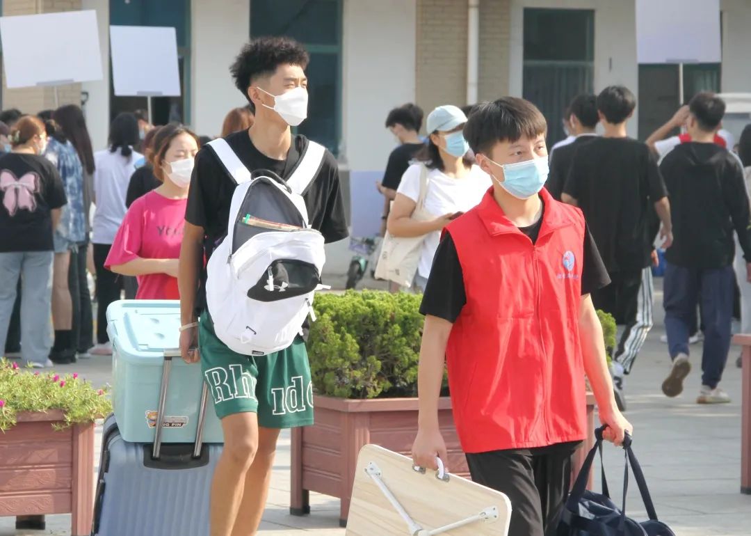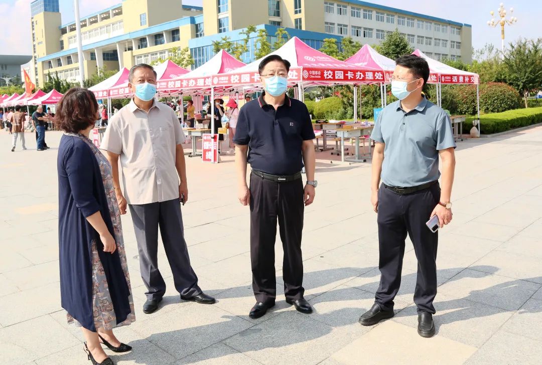 在学校北门,学校领导仔细查看新生进校的各个环节工作,要求各部门提高工作效率,确保各项防疫安全措施落实到位,为新生提供便捷、暖心的服务,让新生安心入校。