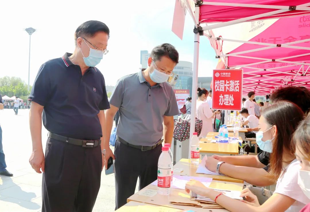 9月13日上午,金年会校长温金祥,副校长鞠洪海、邵侠及相关职能部门负责人到迎新现场进行工作指导,确保迎新工作顺利进行。